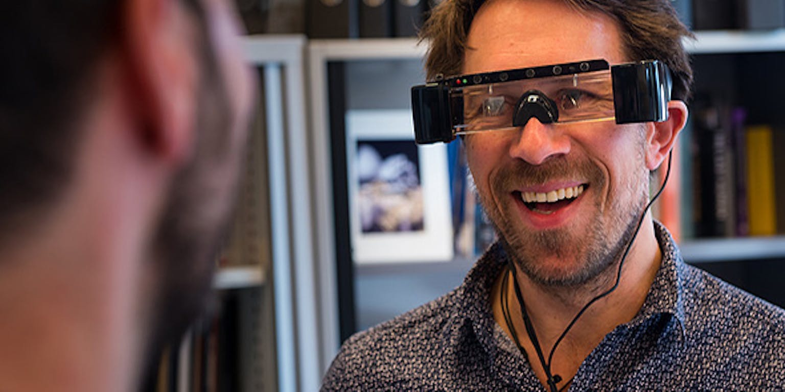 Een bril die de woorden van je gesprekspartner live ondertitelt op de binnenkant van je glazen, alsof je een film kijkt. Taalonderzoeker Niels Schiller heeft hem mede-ontwikkeld. “De bril is bedoeld voor doven en slechthorenden, maar met een beetje fantasie stoppen we er een vertaalfunctie in. Dan kan je hem meenemen op vakantie, als vertaalbril.”