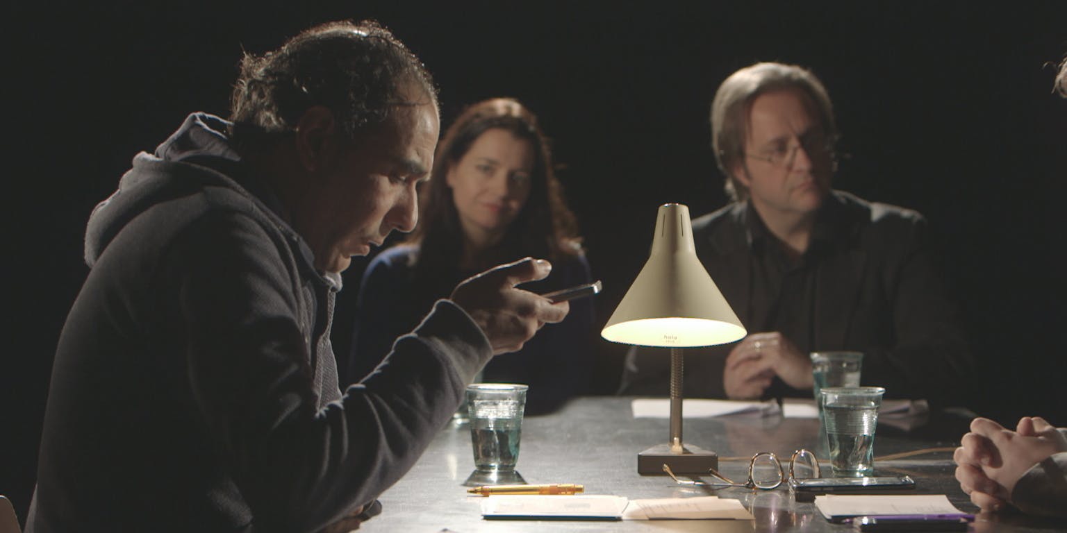 Links op de foto: Omar Ahaddaf, rechts op de foto: taalwetenschapper Stef Grondelaers. Grondelaers is als taalwetenschapper betrokken bij het project Sprekend Nederland van de NTR. In mei 2016 worden in een tv-uitzending de eerste resultaten van het onderzoek gepresenteerd.