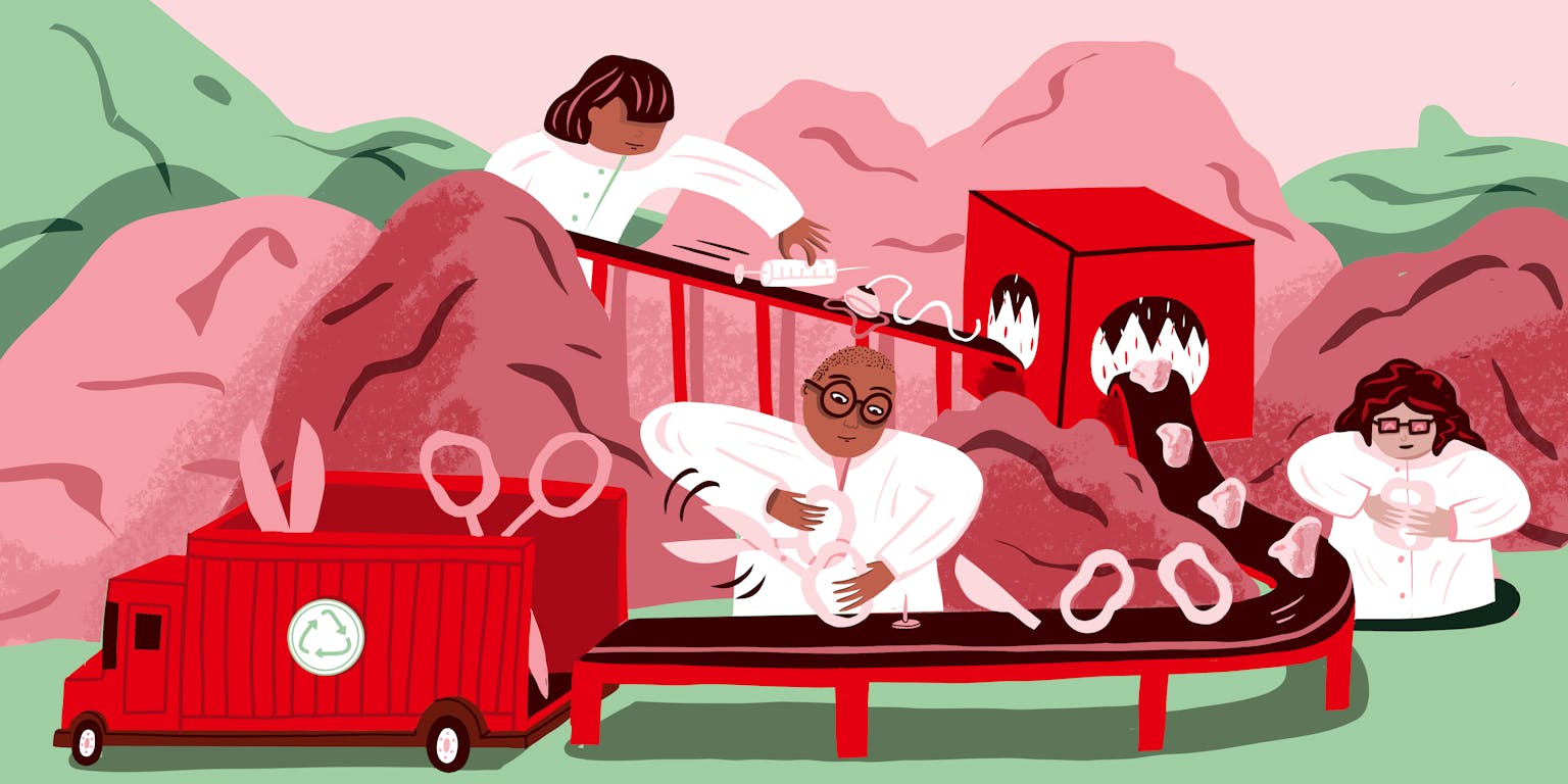 Dat ziekenhuizen veel afval produceren, is bekend, maar tijdens een rondleiding bij het bedrijf GreenCycl val je toch van de ene verbazing in de andere. De onderneming in De Meern (bij Utrecht) zamelt als eerste bedrijf in Nederland gebruikte materialen van ziekenhuizen in. Het bedrijf heeft grote bakken staan vol met metalen gereedschappen als schaartjes, tangen en pincetten – sommige nog niet eens gebruikt. Maar er liggen ook bergen gebruikte plastic schorten en afdekdoeken, inpakpapier, implantaatverpakkingen en containers met instrumenten.