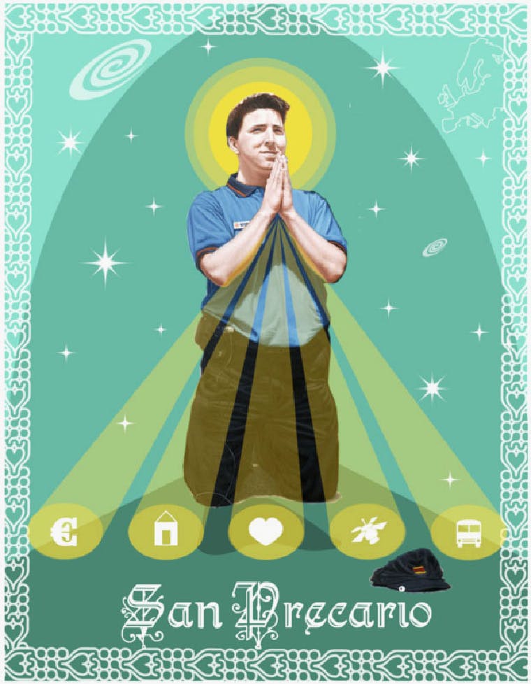 “Onzekere werkers in Italië bedachten in 2004 een nieuwe heilige: San Precario (precair = onzeker), de beschermheilige van alle onbeschermde werknemers,” begint hoogleraar Geschiedenis van de Sociale Bewegingen Marcel van der Linden zijn praatje. San Precario staat symbool voor de toenemende onzekerheid op de Europese arbeidsmarkten. “Flexibele arbeid bestaat al eeuwen, hoewel in het oude Griekenland losse, ongebonden arbeiders die nergens bij hoorden een lagere status hadden dan huisslaven,” aldus Van der Linden. “De standaardbetrekking, een baan voor het leven inclusief alle sociale zekerheden, kwam pas na de Tweede Wereldoorlog. Het ontstond tegelijk met de norm van de mannelijke kostwinnaar. Losse arbeid werd iets voor vrouwen die af en toe dingetjes buiten huis wilden doen.”