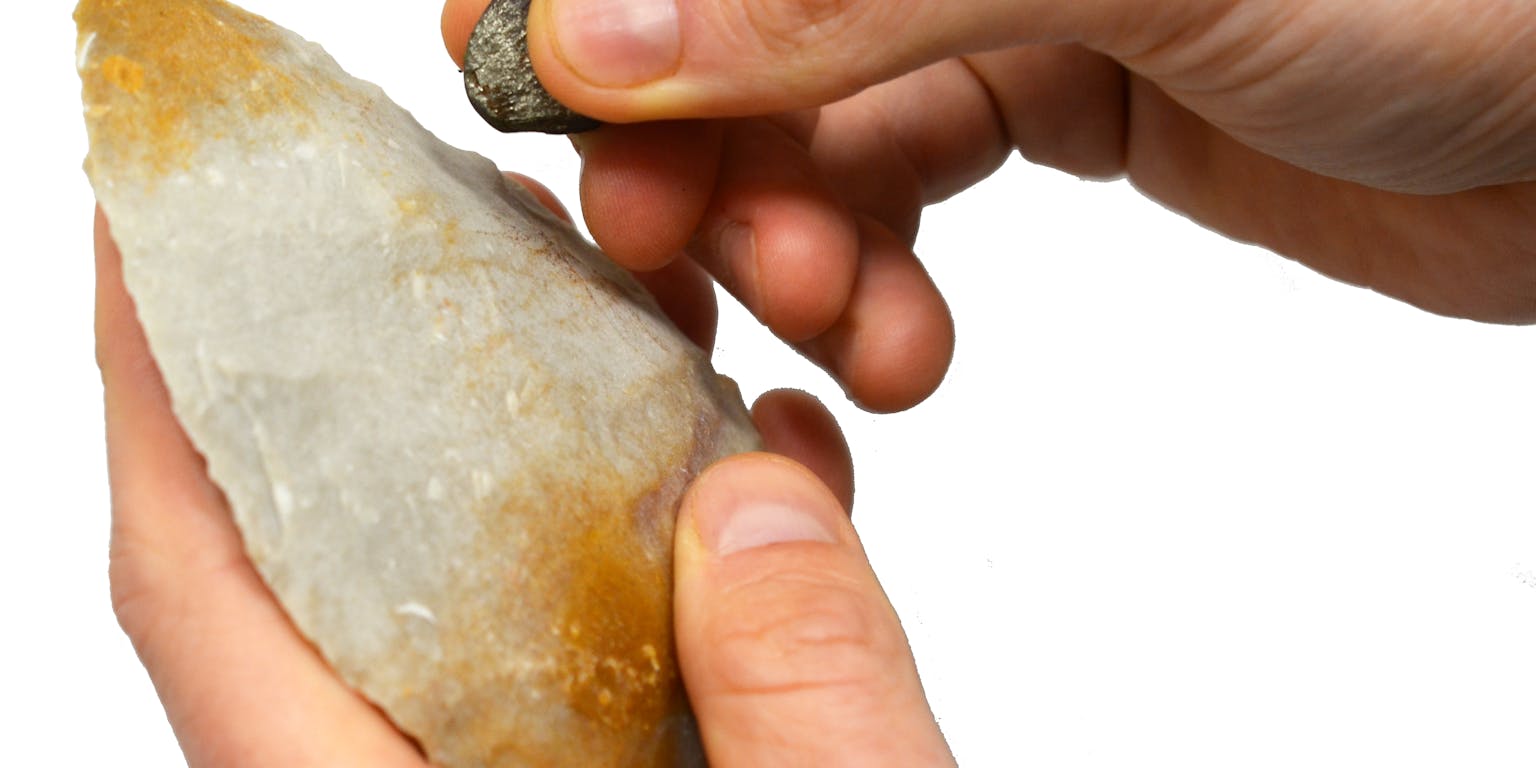 Andrew Sorensen, promovendus Archeologie aan de Universiteit Leiden, was de juiste man voor deze zoektocht. “Al sinds mijn master onderzoek ik vuistbijlen van Neanderthalers. Deze bijlen van steen waren multifunctioneel en werden gebruikt om hout te hakken, om van alles te snijden en als schraper bij het schoonmaken van dierenhuiden. Waarom dan niet ook bij het aanmaken van vuur?”