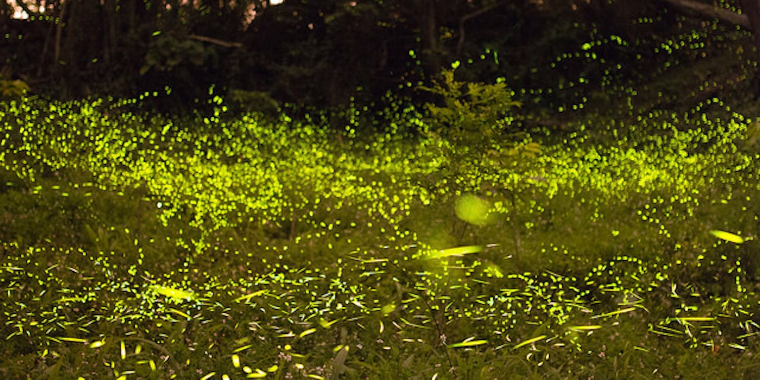 Tijdens mijn klim gebeurt iets opmerkelijks. Een soort spoor van vuurvliegjes ontvouwt zich voor mijn ogen.