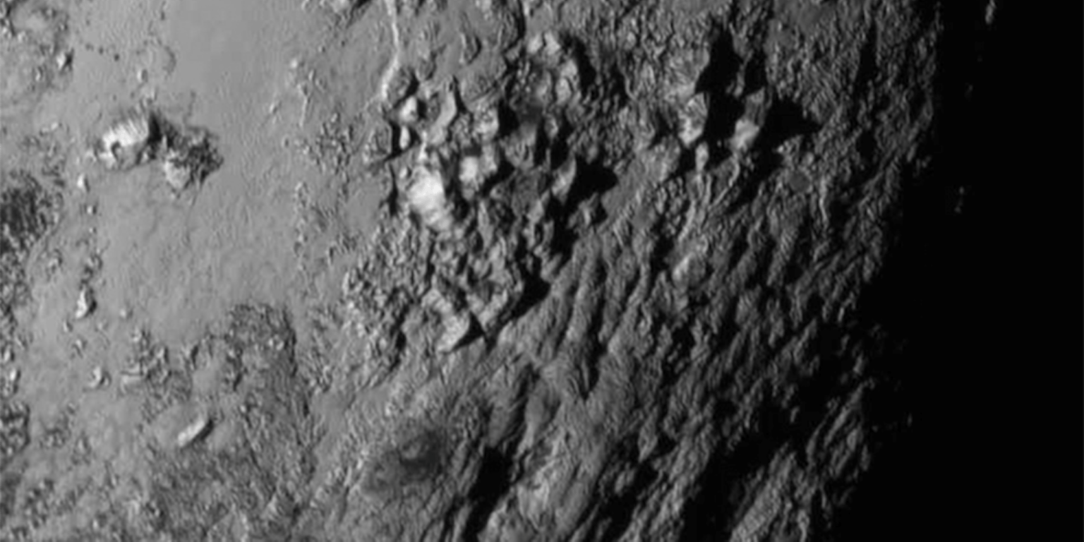 NASADe allereerste close-up van Pluto laat een bergketen zien, met pieken die volgens de wetenschappers achter New Horizons meer dan drie kilometer hoog zijn. Waarschijnlijk zijn de bergen niet ouder dan 100 miljoen jaar en bestaan ze voornamelijk uit waterijs. Hoewel metingen uitwijzen dat het ijskoude oppervlak van Pluto (meer dan 200 graden onder nul) voornamelijk is bedekt met stikstof- en methaanijs, zijn deze materialen niet sterk genoeg om er hoge bergen van te vormen.