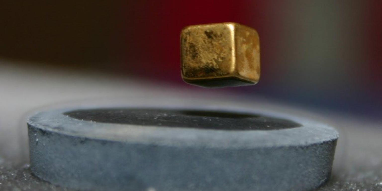 Demonstratie van het Meissner-effect waarbij een magneet boven een stukje supergeleidend materiaal zweeft.
