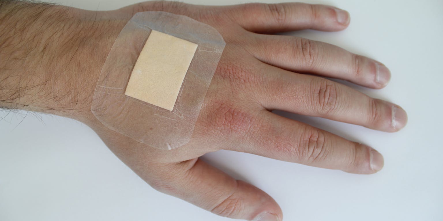 Een gewone pleister dekt de wond af en houdt bacteriën tegen.