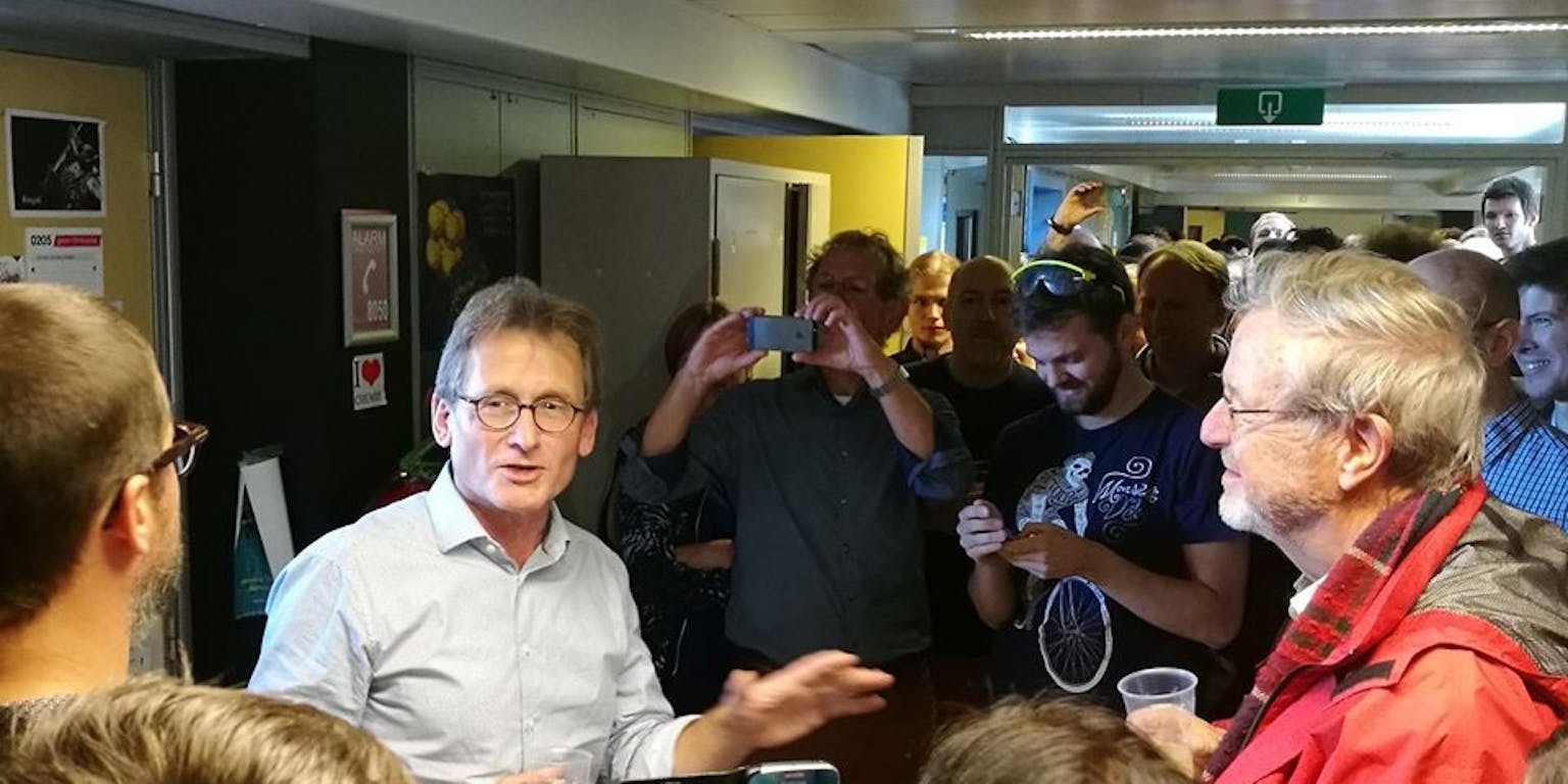 Feest bij scheikunde naar aanleiding van het winnen van de Nobelprijs van Ben Feringa