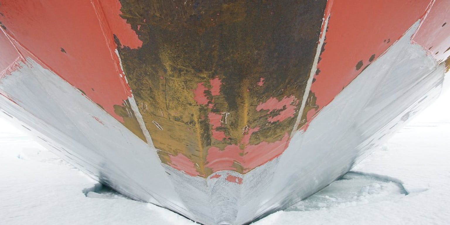 Voorsteven van één van de grootste ijsbrekers ter wereld: de 50 Let Pobedy.