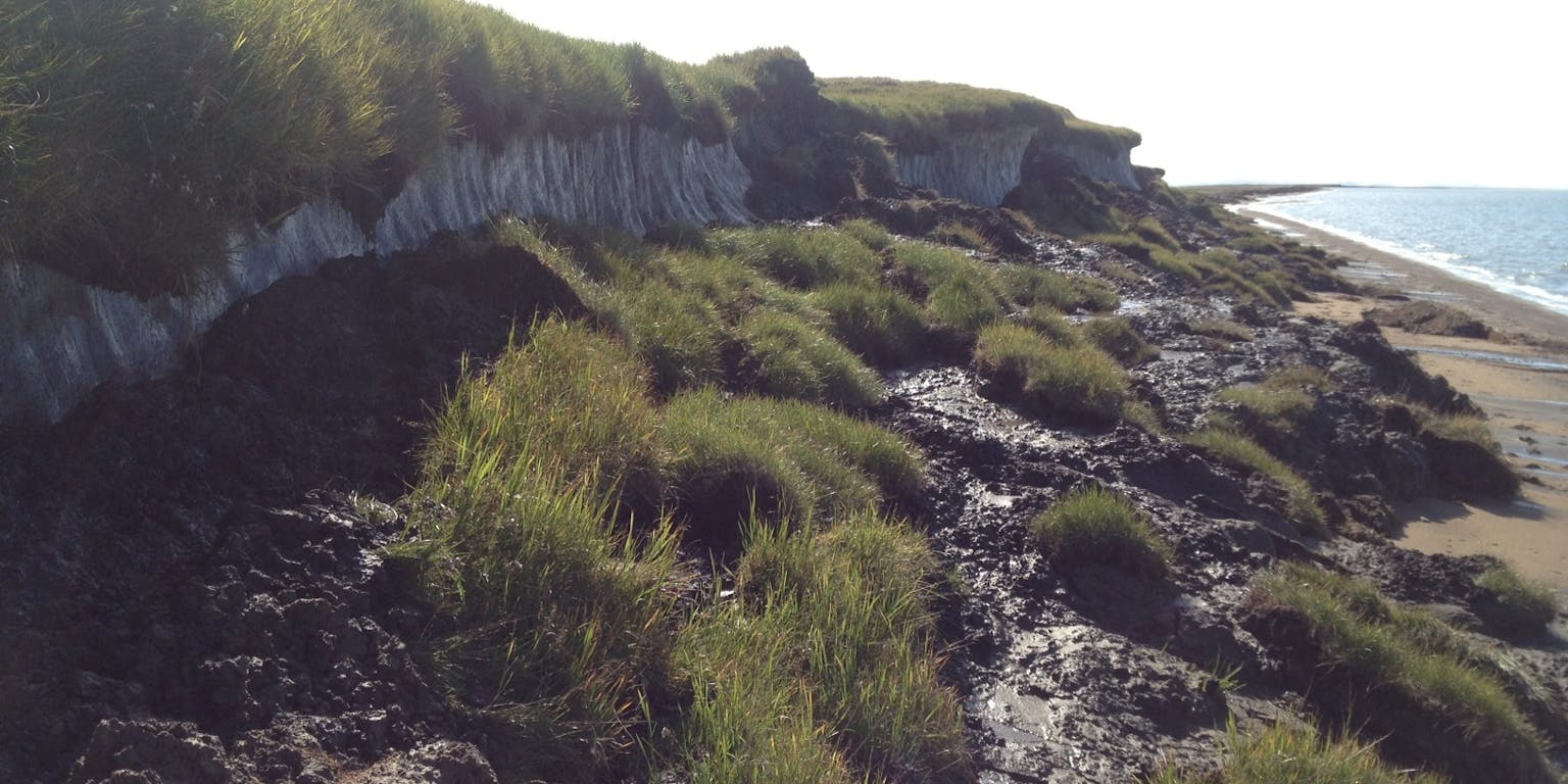 Ontdooiende permafrost en erosie van de Noord-Canadese kust, langs de Beaufortzee.