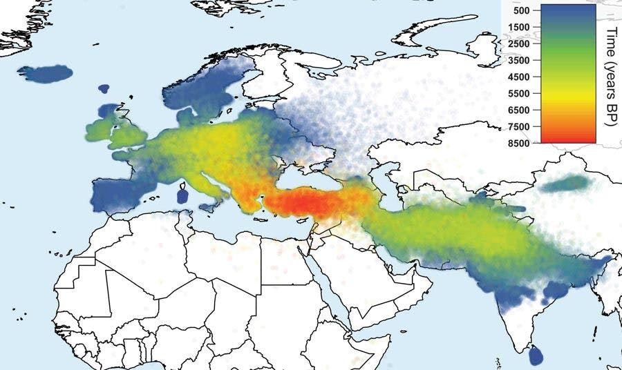 Dat is ook niet onwaarschijnlijk, want bij de verspreiding van veel andere grote taalfamilies ging het precies zo, schrijven de onderzoekers. Ook komen de resultaten van de taalwetenschappers overeen met archeologische vondsten die de verspreiding van de landbouw in kaart brengen.