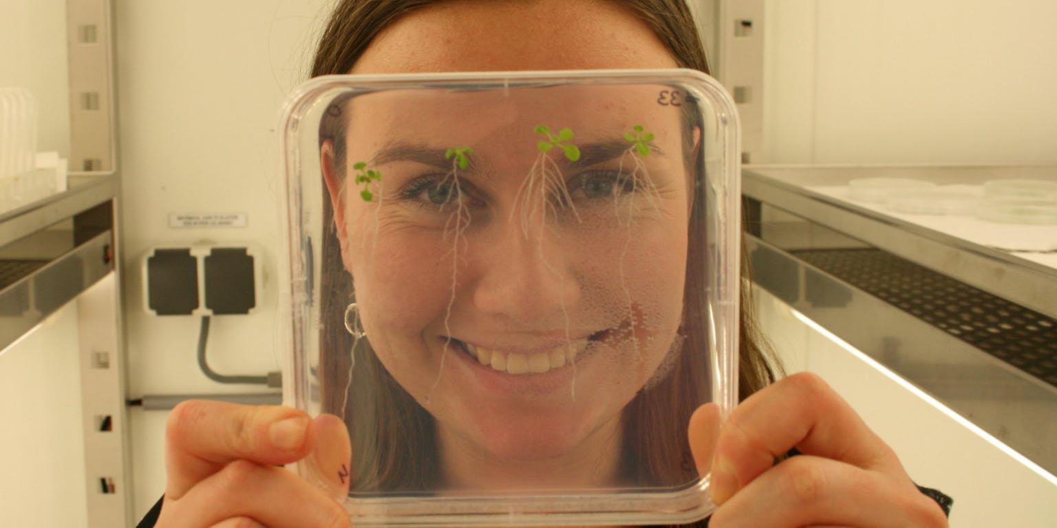 Promovenda Dorota Kawa onderzoekt in het lab de relatie tussen milieuomstandigheden en wortelvorming van de zandraket.
