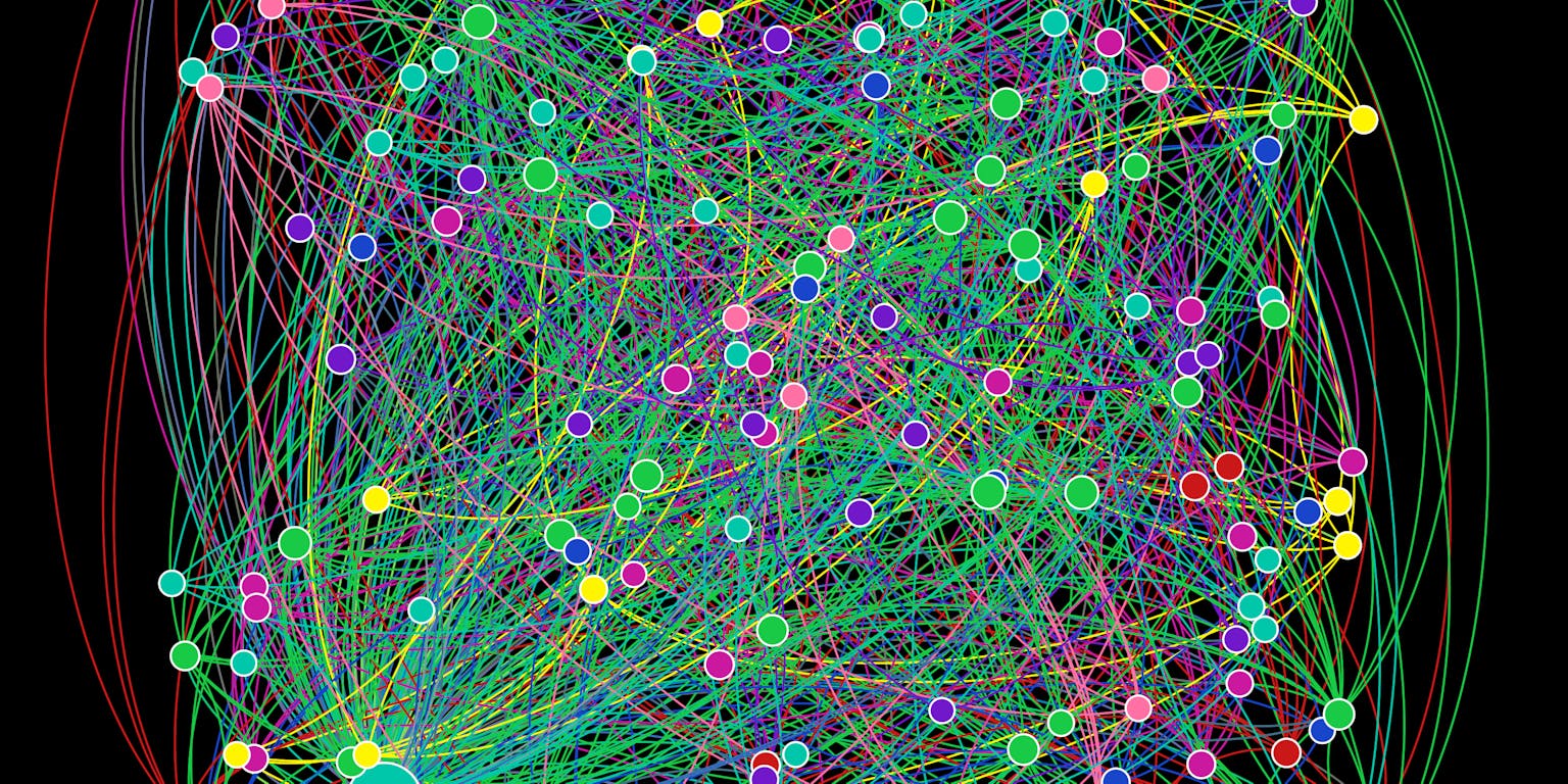 Clara Stegehuis voor NEMO KennislinkOp het eerste gezicht geeft dit plaatje een ongelooflijke chaos weer. Alle lijnen lopen kriskras door elkaar heen, en ik kan er geen enkele structuur in ontdekken. En dit is dan alleen nog maar mijn eigen sociale netwerk. Als we alle gebruikers van LinkedIn in één netwerk zouden weergeven, wordt de chaos alleen nog maar groter.