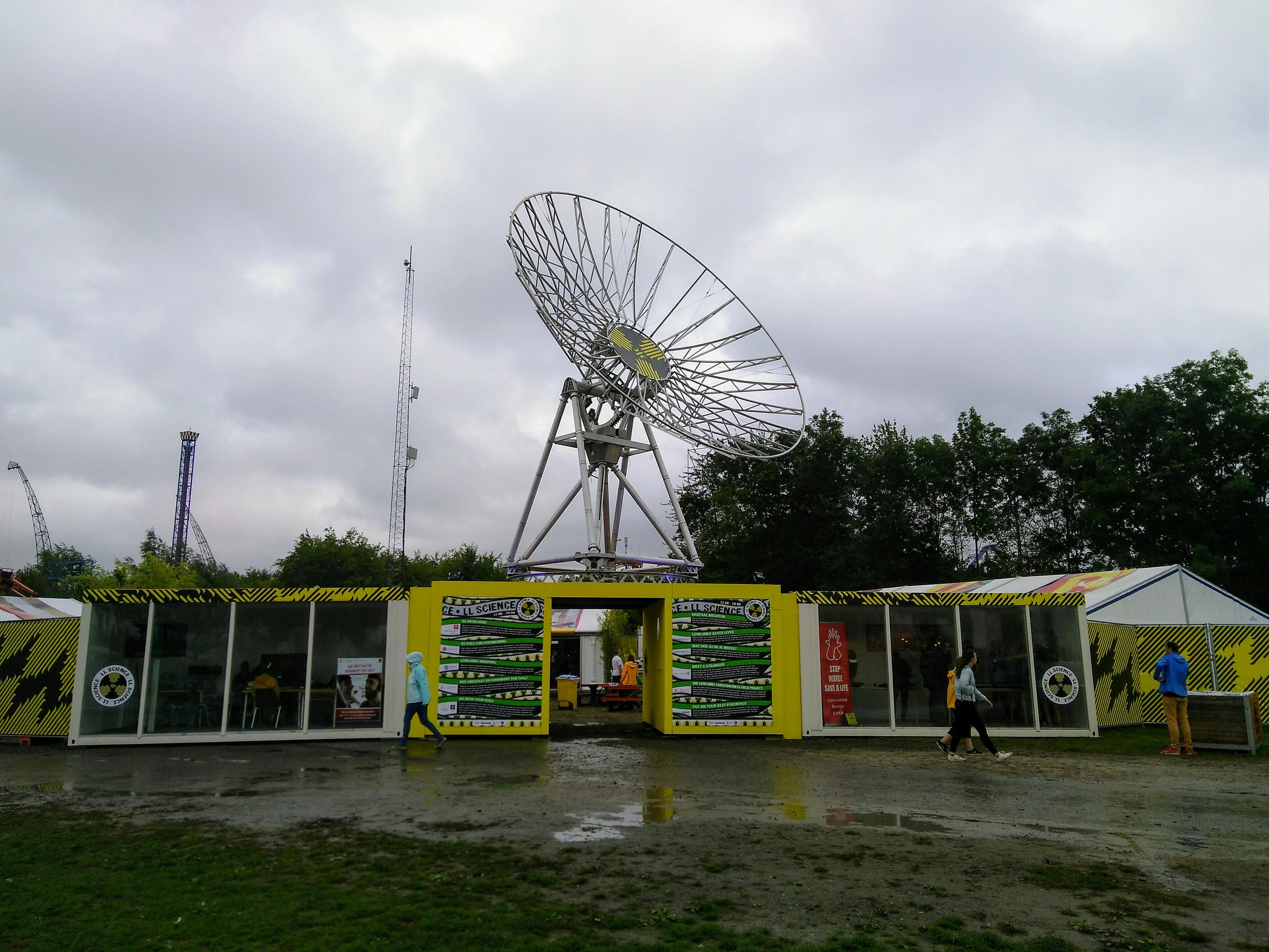 Dan zet de regen, die al de hele middag wat dreigend in de lucht hangt, toch door. Het kan de festivalgangers niet echt deren: met ponchos en regenjassen gaat het veld voor de Alpha nog altijd uit zijn dak voor Billie Eilish. Bezoekers die zich minder goed hebben voorbereid zoeken beschutting. En waar kan dat nou beter dan in de stands van Lowlands Science? En als je daar dan toch bent… De onderzoekers verwelkomen de nieuwe gasten met open armen.