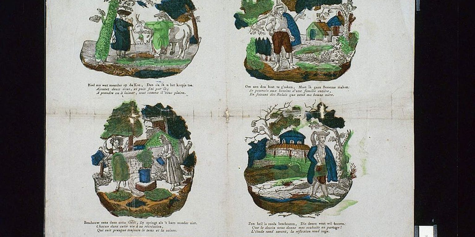 Kinderprent tweede helft 19e eeuw, collectie Zeeuwse Bibliotheek. “Bied my wat meerder op de koe, dan sla ik u het koopje toe.”