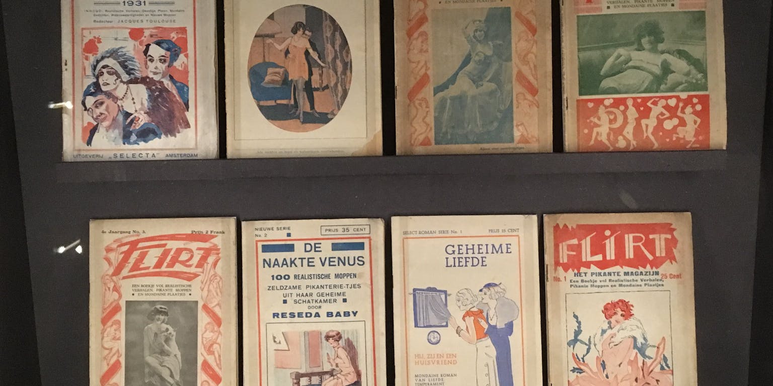 In het volgende deel van de tentoonstelling staat de recent verworven collectie van Bert Sliggers, de oud-conservator van het Teylers Museum, centraal. Zij bevat vooral goedkope pornoblaadjes uit de negentiende en twintigste eeuw. Kuipers: “Vooral de vroege porno is heel interessant, omdat er verder geen exemplaren van bewaard zijn gebleven. Deze boekjes, realistische romans geheten, kon je voor 10 of 20 cent kopen. De oplages waren enorm hoog, maar werden makkelijk weggegooid omdat het niets waard was.”