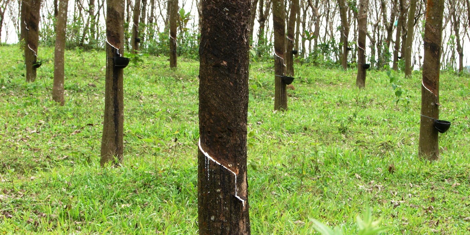 Natuurrubber komt nu uit rubberbomen. In deze bomen zit latex, een melkachtig sap waar het rubber in zit. Ze groeien alleen in een tropisch klimaat, dus vooral in Zuidoost-Azië vind je veel plantages. Het werk op deze plantages is zwaar: de werkers maken elke dag een inkeping in de boom, waar dan langzaam het latex uitdruppelt. Ze moeten elke dag alle bomen langs om de inkepingen te maken en het latex te verzamelen. “Het werk levert relatief weinig op”, vertelt Van der Meer. “Daarom stappen veel boeren over naar palmolie, dat is veel minder arbeidsintensief en daar verdienen ze meer mee.”