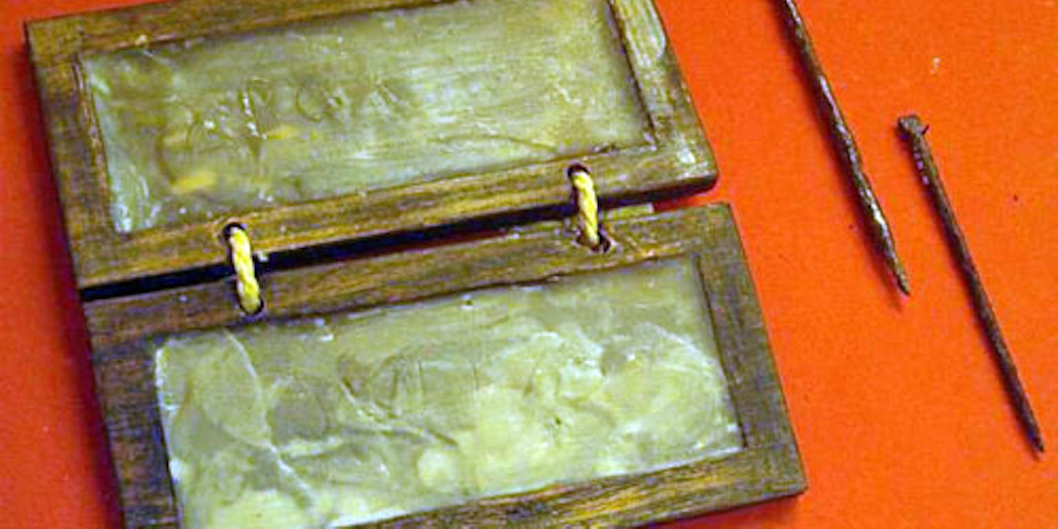 De 2000 jaar oude wastafeltjes zijn in feite houten omlijstingen die gevuld werden met zwart gemaakte bijenwas. Daarin werd geschreven met een griffel, die van ijzer, brons of ivoor was. Door de tijd heen is de was vergaan, maar de griffel liet afdrukken na in het hout eronder, en die zijn nu voor een deel ontcijferd. Dat valt overigens niet mee, want vaak werden woorden ook gewist om er andere overheen te schrijven.