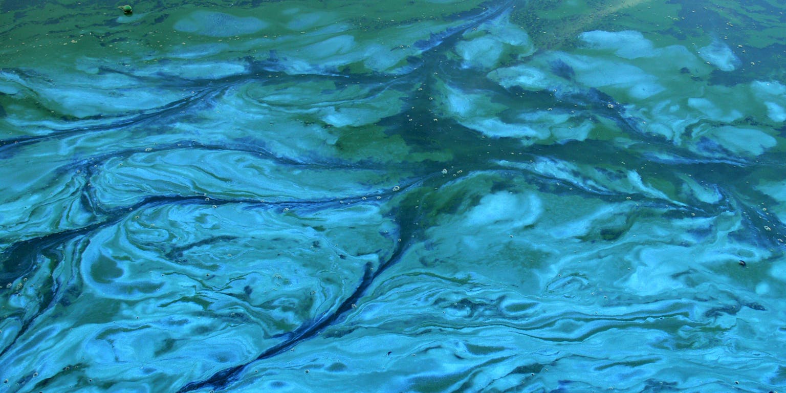 Cyanobacteriën op een kanaal.