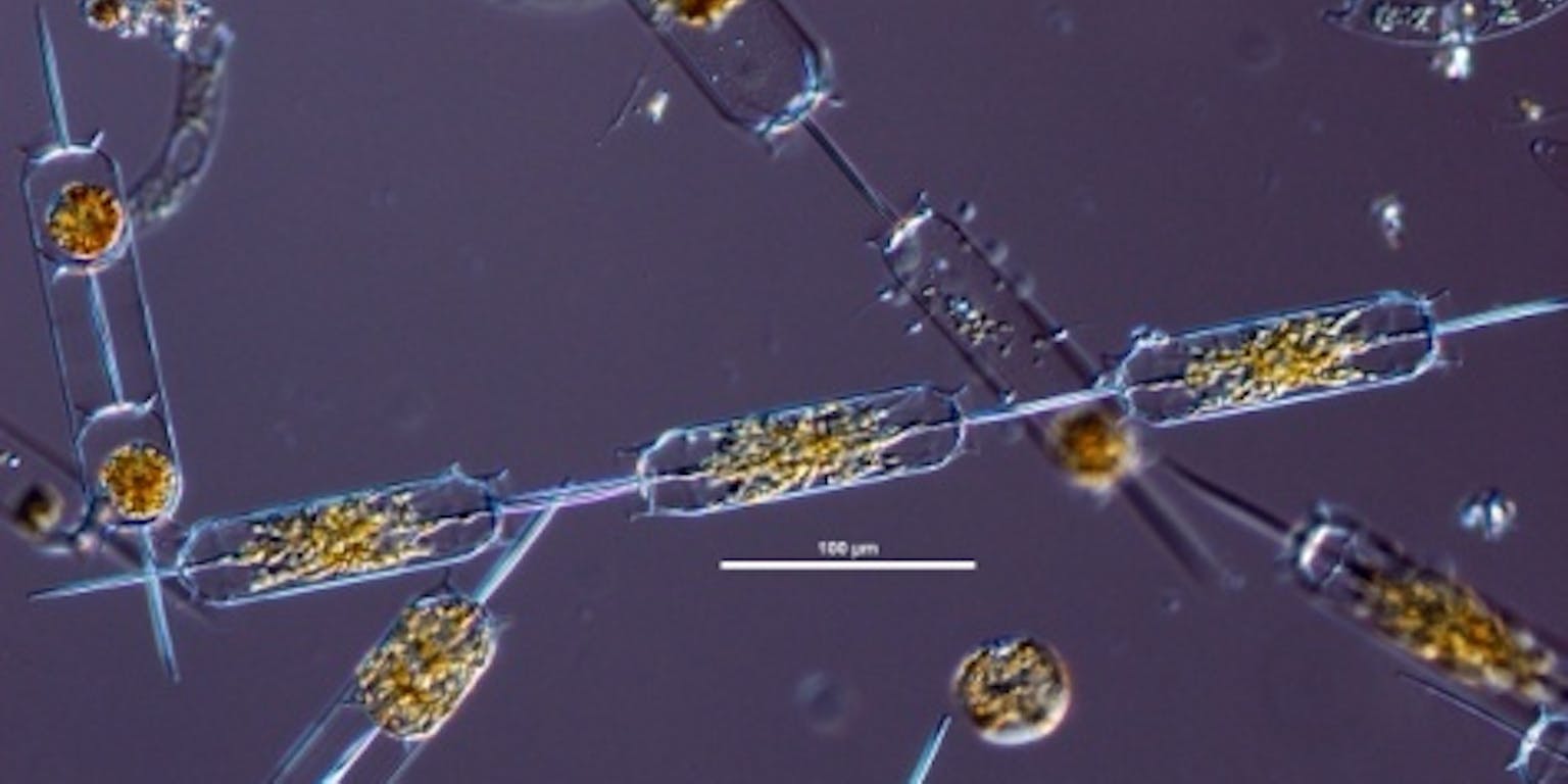 “In de Noordzee en Waddenzee zie je een opeenvolging van algensoorten,” vertelt Hommersom. In het vroege voorjaar maken de kiezelwieren (ook een soort groene algen, ofwel diatomeeën) een groeispurt door en in de late lente is er een bloei van de blauwalg Phaeocystis. Als deze alg massal sterft, ontstaan de bekende schuimlagen op het strand. Vandaar de naam ‘schuimalg’.