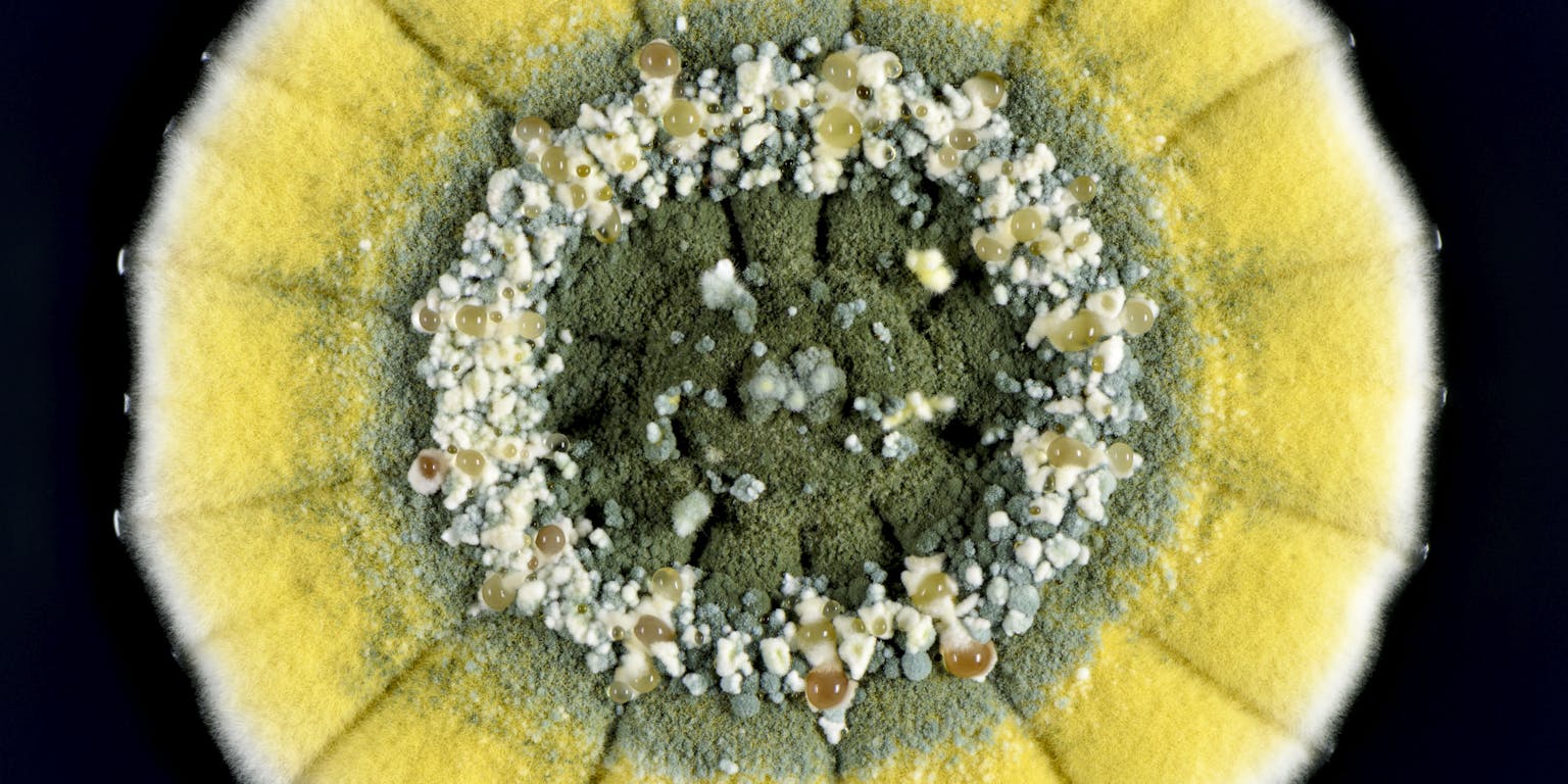 De schimmelkolonie verandert tijdens de groei door de vorming van sporen mooi van kleur. Op een gegeven moment vormt de schimmel zeer grote sporendragende uitsteeksels van 26 millimeter (synnemata), die omhoog steken uit het midden van de kolonie, een soort minipaddenstoelen. Ook vormen zich druppels op het oppervlak. Daar kunnen afhankelijk van de schimmelsoort eiwitten, gifstoffen of andere uitscheidingsstoffen in zitten.