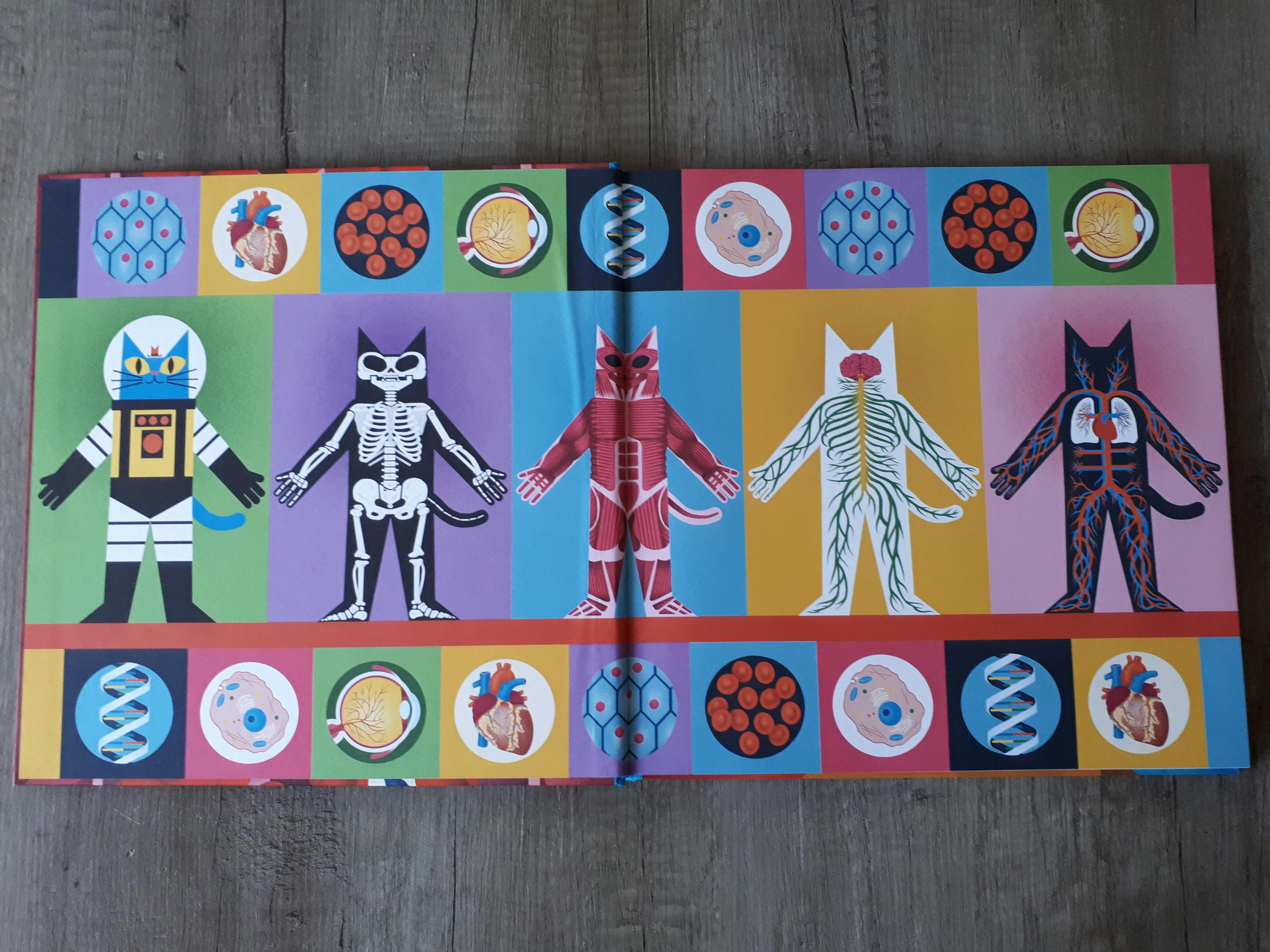 De EenhoornWat als eerste opvalt aan ‘Professor Astrokat – Reis door je lijf’ is de enorm kleurrijke en vrolijke kaft. Ook de binnenflap is rijk versierd met prenten van Ben Newman. Dit maakt het boek erg aantrekkelijk en nodigt uit om verder te gaan kijken.