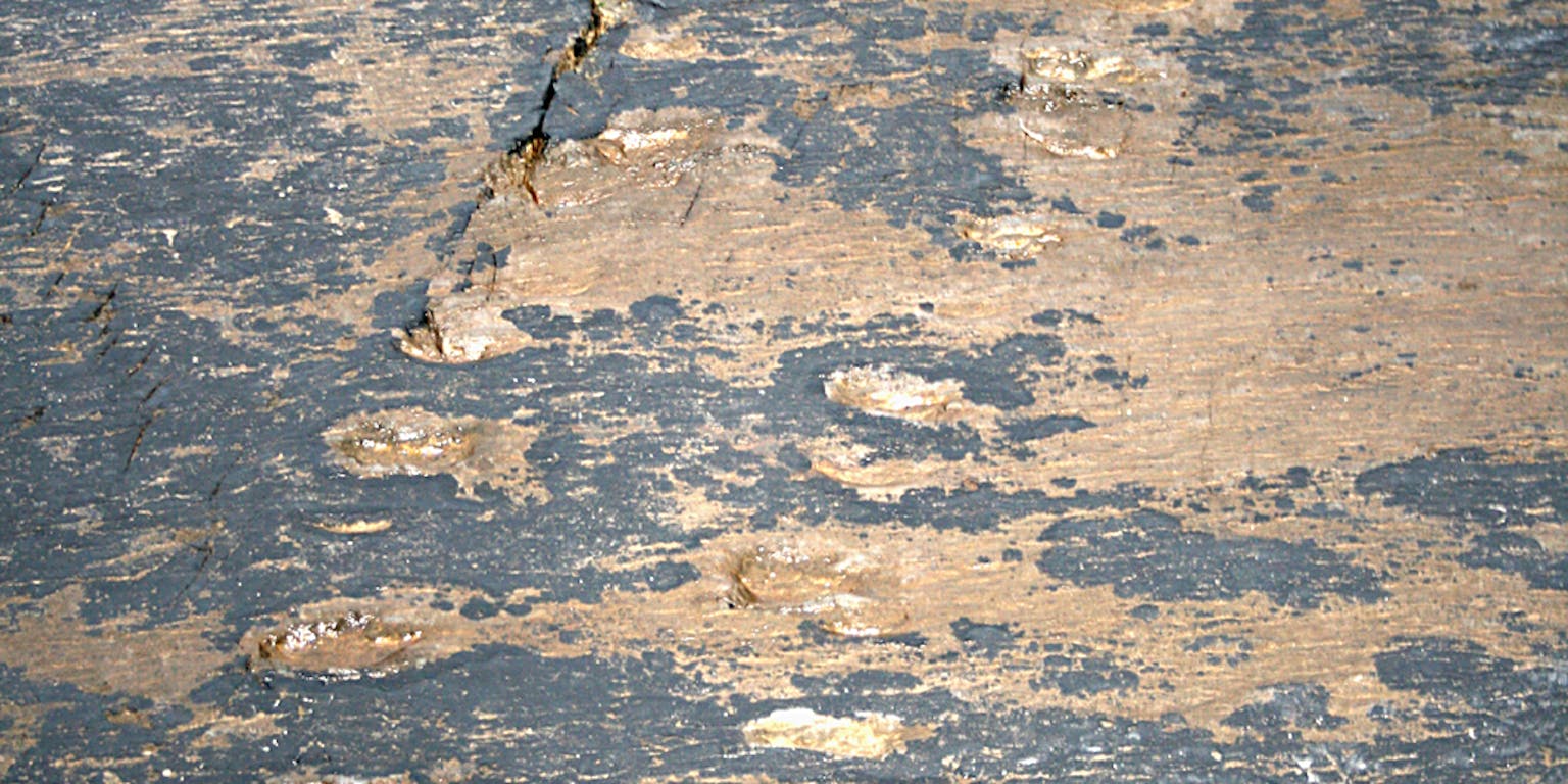 Geological Survey of IrelandDit tektonische geweld vond plaats tijdens de Hercynische orogenese, een periode van gebergtevorming aan het einde van het Paleozoïcum (tot 250 miljoen jaar geleden). Door deze vervorming, in combinatie met erosie door het zoute zeewater, geven de afdrukken niet veel details bloot. Wel is door de verschillende afmetingen een onderscheid te maken tussen voor- en achterpoten.