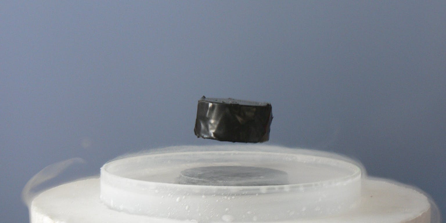 Het zogenoemde Meissner-effect waarbij een permanente magneet blijft zweven boven een supergeleidend materiaal. Dat kan doordat de supergeleider geen extern magnetisch veld toelaat en zelf een veld opwekt dat precies gespiegeld is aan dat van het magneetje.