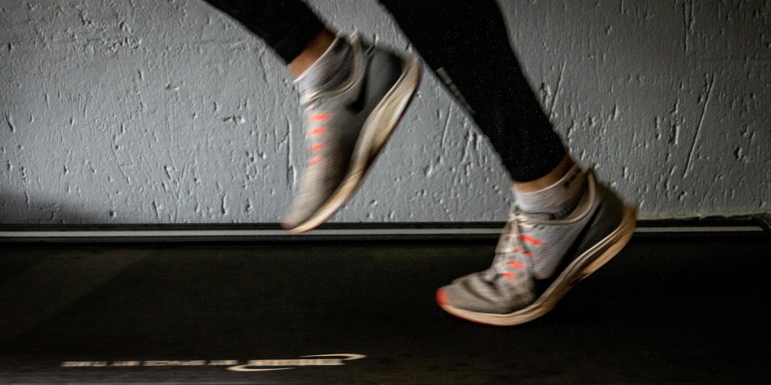 Wat dat betreft heeft een marathon op een loopband lopen een voordeel: je hoeft niet op je pacing te letten. Je stelt het apparaat in op de gewenste snelheid en vervolgens blijft de band met die snelheid doordenderen. Op een lange afstand als de marathon is het de kunst om zo zuinig mogelijk te lopen. Topatleten proberen dan ook een zo vlak mogelijk tempo aan te houden. “Hoe eerder je in je ritme zit, des te beter”, zegt Roy. “Je hebt natuurlijk geen bochten, stoepranden, dus als je eenmaal in die tred zit en het gaat lekker, dan moet het goedkomen.”