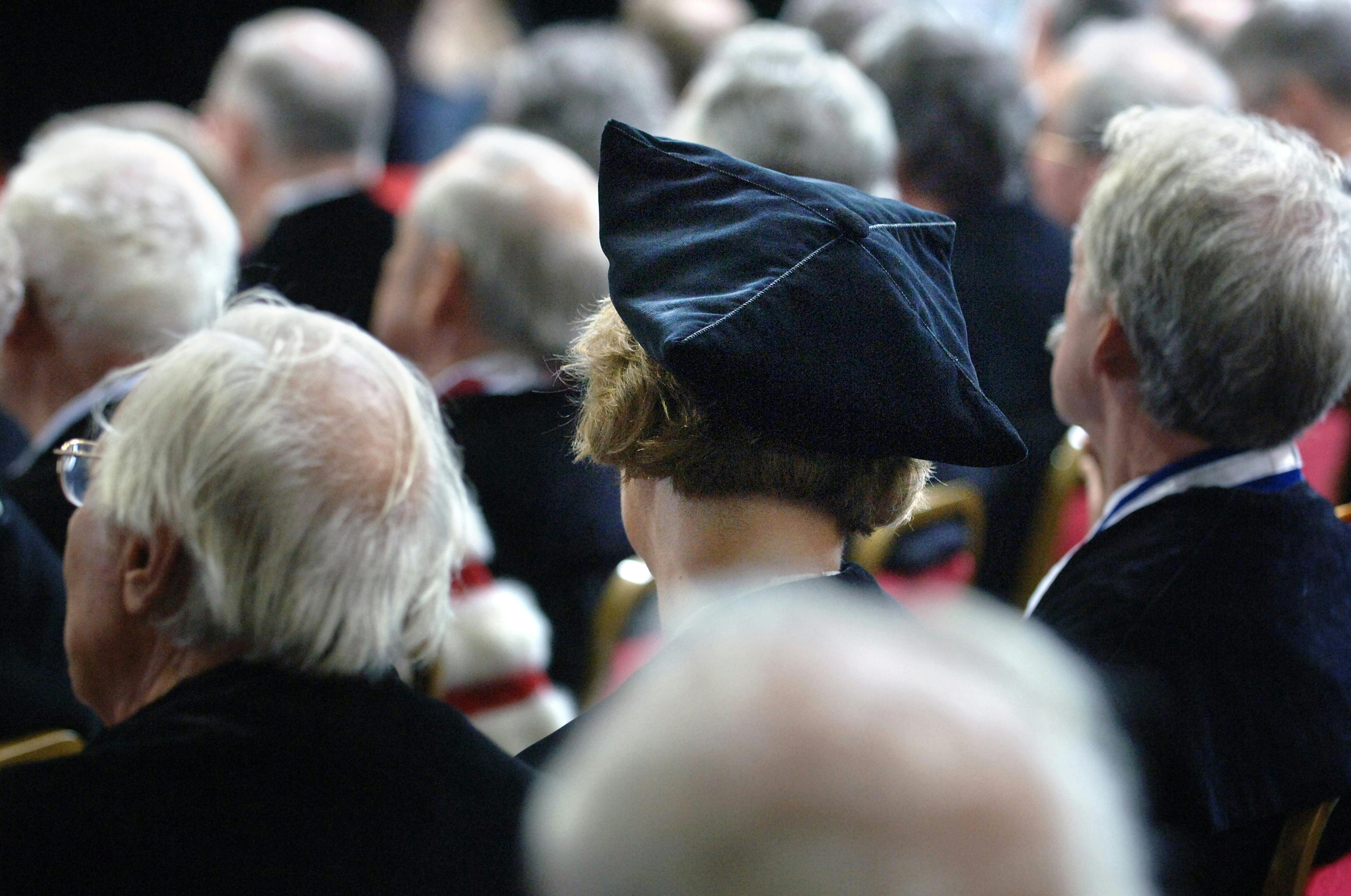 Maar dan komt het glazen plafond, de onzichtbare barrière die vrouwen belemmert hogerop te komen. De stap van universitair docent naar universitair hoofddocent maken mannen vaker. Het aandeel vrouwelijke universitair hoofddocenten (uhd’s) is ineens nog maar 34 procent. Bij de volgende stap blijven nog meer vrouwen achter: slechts 28 procent van de hoogleraren in Nederland is vrouw.