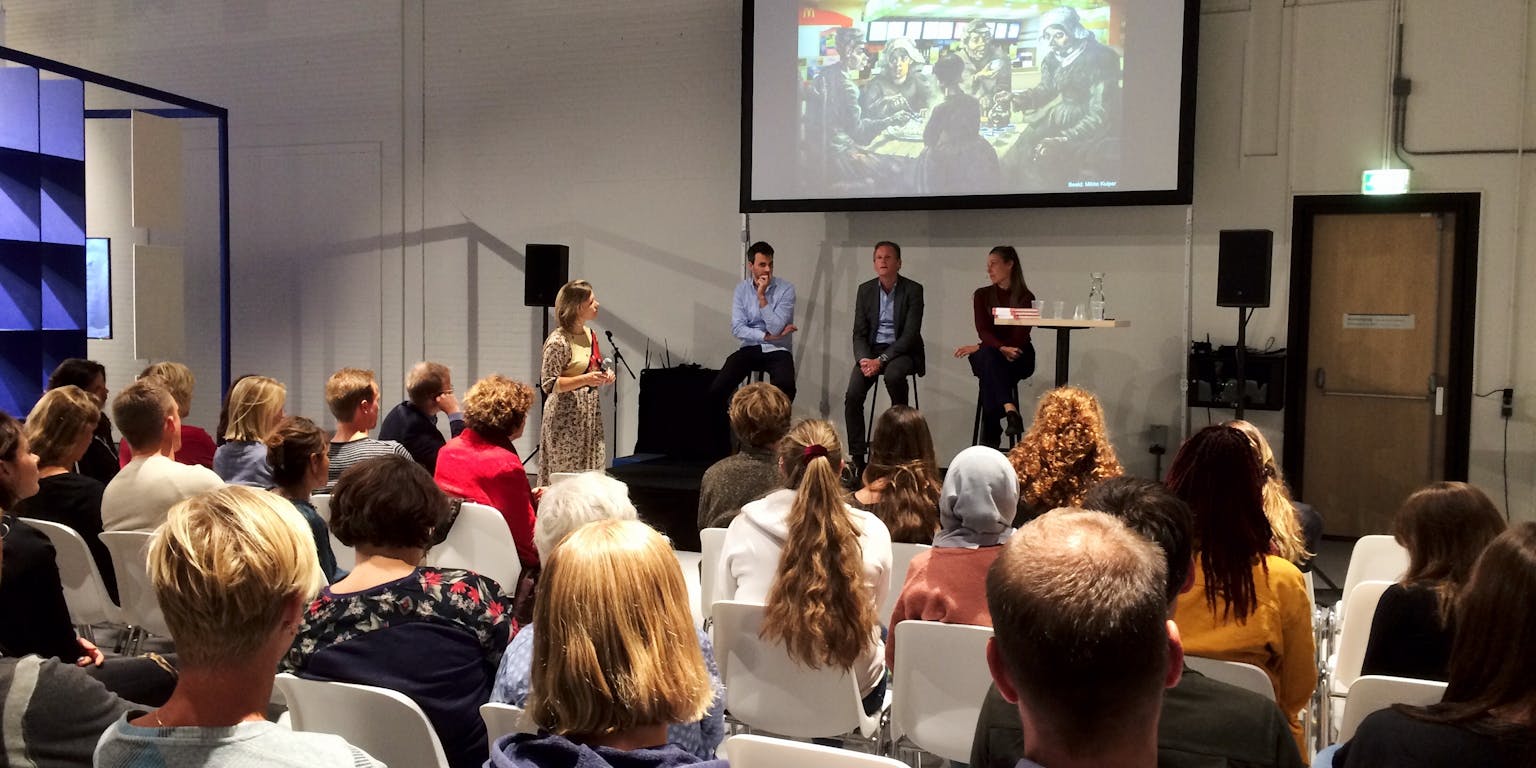 Het is druk in de NEMO Studio, waar de bezoekers eerst wat rondlopen in de tentoonstelling over kweekvlees, plofinsecten en genetische modificatie. Er worden zelfs stoelen bijgehaald om alle geïnteresseerden een zitplaats te geven. Desiree opent de avond met de vraag wie van zichzelf vindt dat hij of zij duurzaam bezig is met voedsel. Hierop gaan slechts een stuk of tien handen de lucht in. Maar wat verstaan we eigenlijk onder duurzaamheid? Weinig vlees eten, lokale voeding maar ook de ingewikkelde term ‘eiwittransitie’ (de overgang naar plantaardige eiwitten) wordt genoemd.