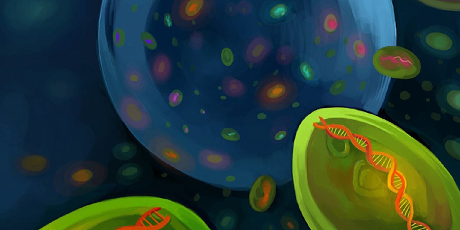 Aan de binnenkant van elke cel zwemmen dezelfde soorten moleculen rond. Moleculen als DNA, koolhydraten, vetten en vooral heel veel eiwitten. En in elke cel organiseren die moleculen zich spontaan tot grotere onderdelen, een trucje van de natuur dat zelfassemblage heet. Dankzij al die verschillende moleculen kan een cel blijven functioneren. Ze zorgen ervoor dat de juiste stoffen, die bijvoorbeeld afkomstig zijn uit het broodje kaas dat je at, terechtkomen op de juiste plaats in de cel, bijvoorbeeld bij de bouwplaats voor nieuwe eiwitten.