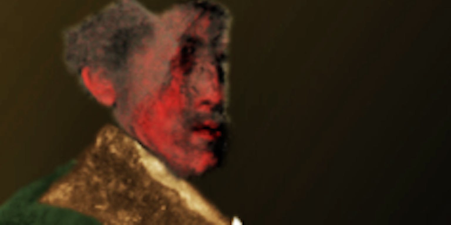 De scan met MA-XRF laat het schilderij onder Oude man in militair uniform zien. Op het derde plaatje is het gezicht duidelijk zichtbaar. De laatste afbeelding is 180 graden gedraaid, omdat er op de kop overheen is geschilderd.