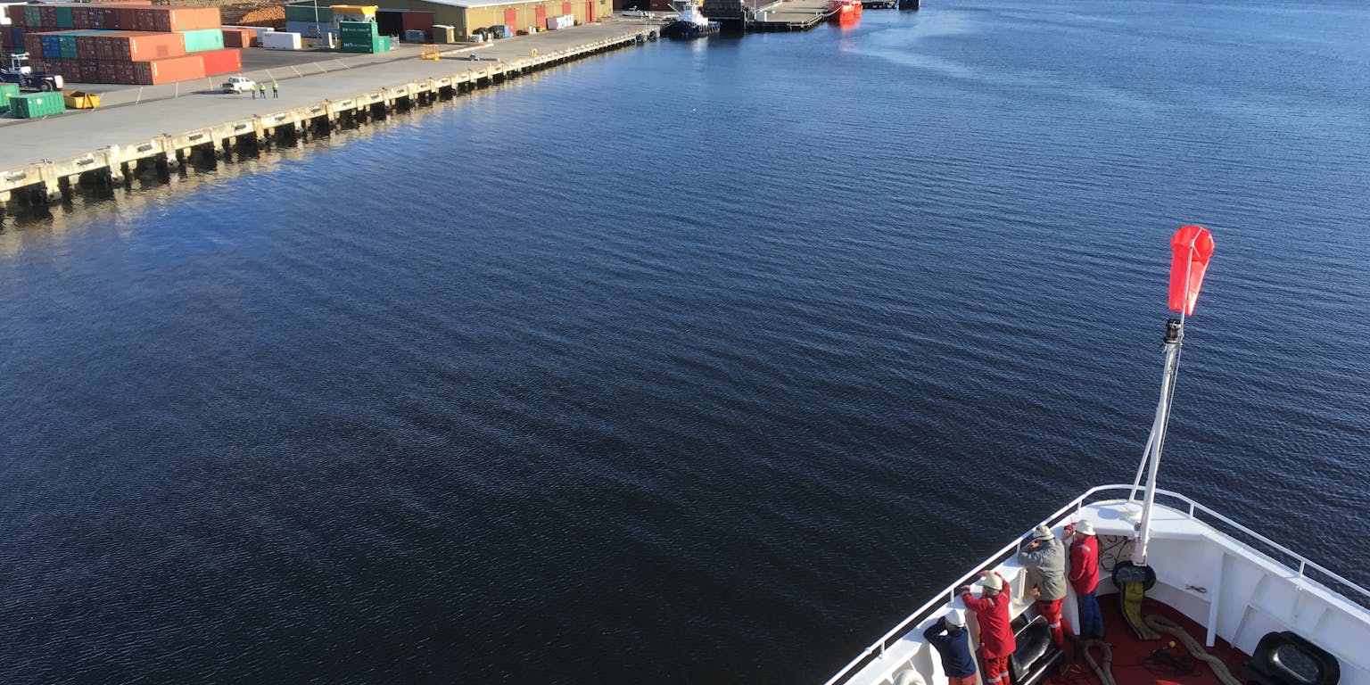 Het is nog niet eens zes uur ‘s ochtends, maar iedereen komt tevoorschijn uit kajuit of kombuis. Het dek op, want vandaag komen we aan in Hobart, Tasmanië. Eind september, na meer dan acht weken op de zee, zit International Ocean Discovery Program Expeditie 371 er op.