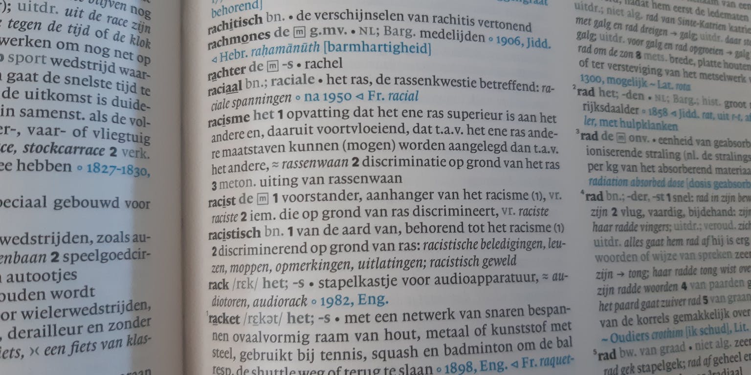 Een dergelijke scheidslijn ontstaat ook door taalkeuze. Bijvoorbeeld als een Nederlander overschakelt op Engels omdat hij aangesproken wordt in ‘gebrekkig’ Nederlands. En dan zijn er natuurlijk nog polariserende woorden zoals ‘autochtoon’ versus ‘allochtoon’ en ‘blank’ versus ‘zwart’. Wanneer dit ‘wij-zij-denken’ gebaseerd is op huidskleur of vermeende afkomst, is er sprake van racisme. In hoeverre zit racisme ingebakken in de Nederlandse taal?