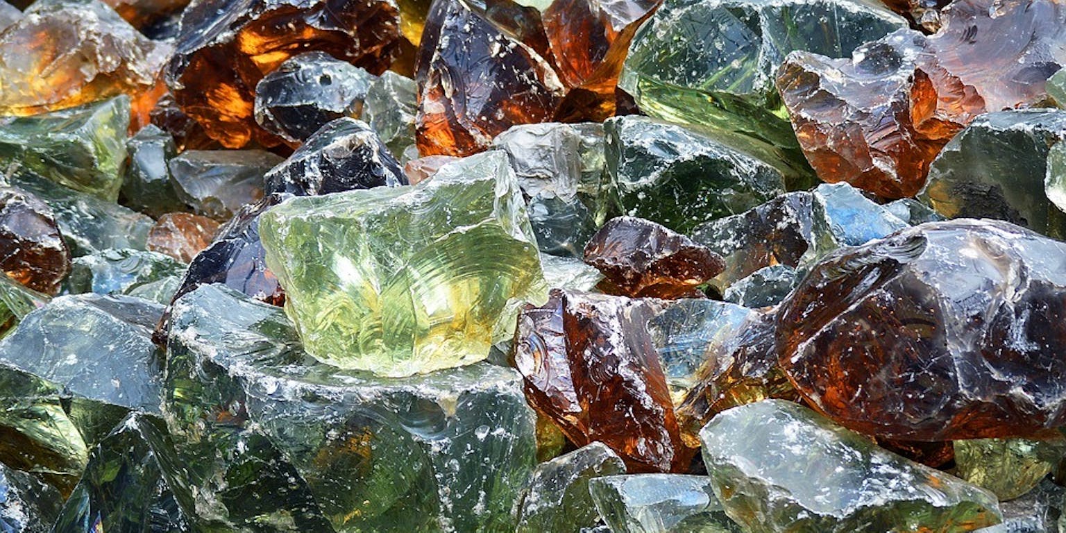 Deze stukken glas worden weer omgesmolten tot nieuwe flessen