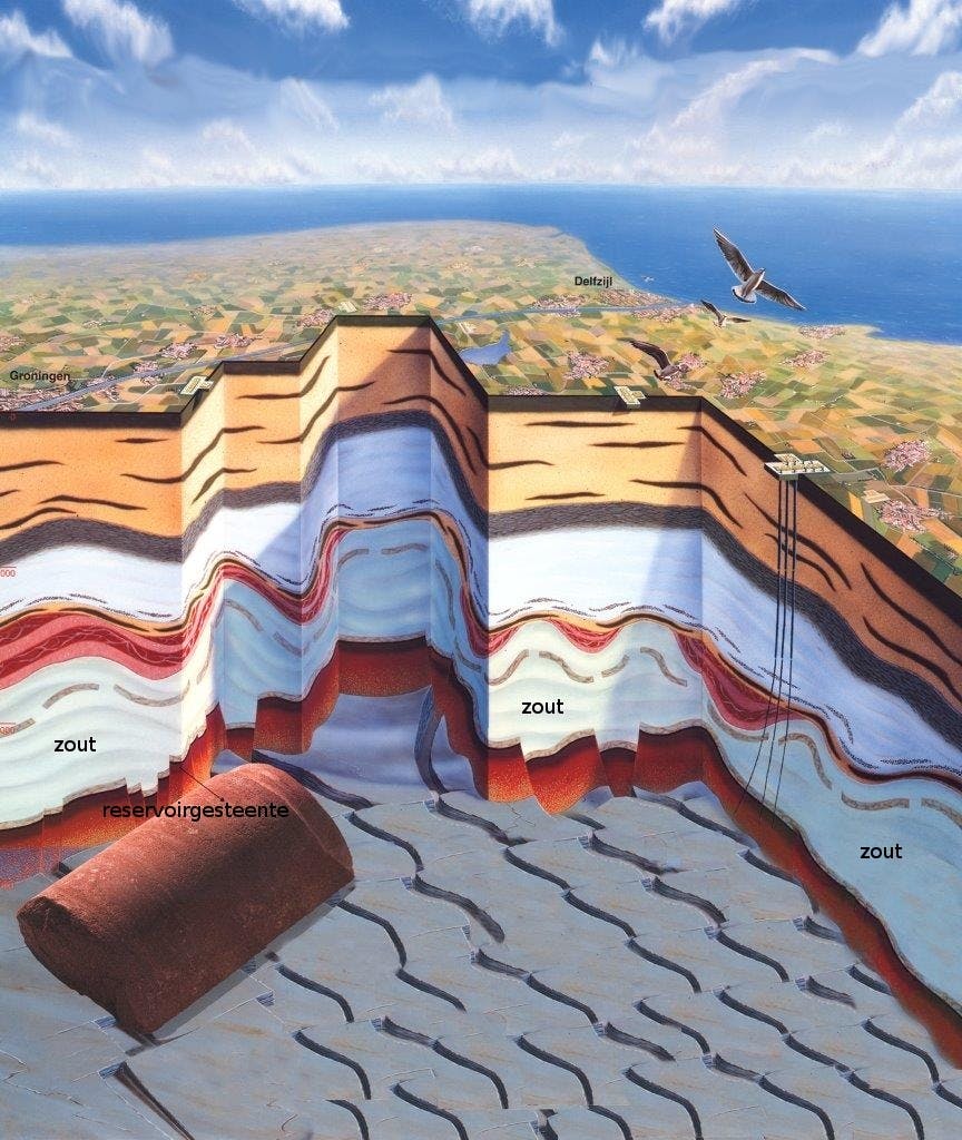 Vergeleken met het omringende gesteente is zout namelijk een kneedbaar goedje, dat bij bewegingen in de ondergrond dus niet breekt maar langzaam vervormt – het heeft het effect van een laag jam tussen twee crackers. De breuken die in het gasreservoir zitten lopen in de meeste gevallen dus niet door in de zoutlaag, zegt Van Eijs. Volgens Peter van der Gaag, die zich als onafhankelijk geoloog al enkele jaren bezig met de Groninger aardbevingen, is dit effect belangrijker dan de eigenschap van het zout dat het aardbevingsgolven verstrooit en weerkaatst.