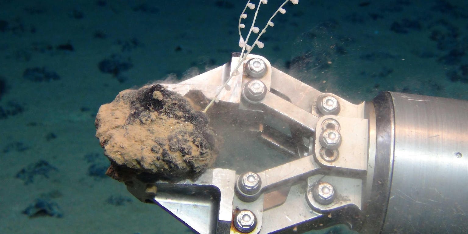 Enkele uren daarvoor lagen deze zogenoemde mangaanknollen nog ruim vier kilometer lager op de oceaanbodem. Het zijn bedrijven als het Canadese The Metals Company dat ze in groten getale willen opvissen. In 2022 deed deze onderneming de eerste grootschalige mijnbouwtest in de oceaan sinds de jaren zeventig. Het bedrijf haalde 4500 ton aan metaalrijke knollen uit het water.